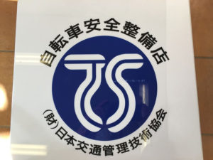 ただ「どこの自転車屋さんでもよろし」というものではなく、この「TSマーク」は自転車整備士がいる店舗で受付しています。裏を返せば『整備士がいないお店』もあります。つまり自転車屋を独立開業するのには必要はないからです。ただ多くの自転車屋さんは整備資格を保持しています。そのため店頭にこんな看板を掲げています。