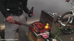 Jeremy氏が、自分用に作った自転車がある。特にお気に入りなのが、バーベキュー用の自転車だ。グリルはフロントキャリア部分に置けるようにフレームを作り、リアキャリア部分はまな板、そしてビールや食材を運べるサイドバックも装着できるように仕立てた自転車だ。