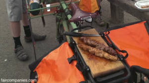 Jeremy氏が、自分用に作った自転車がある。特にお気に入りなのが、バーベキュー用の自転車だ。グリルはフロントキャリア部分に置けるようにフレームを作り、リアキャリア部分はまな板、そしてビールや食材を運べるサイドバックも装着できるように仕立てた自転車だ。