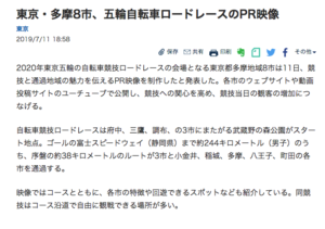4.東京・多摩8市、五輪自転車ロードレースのPR映像 (7/11付 日本経済新聞)