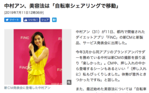 5.中村アン、美容法は「自転車シェアリングで移動」(7/11付 日刊スポーツ)