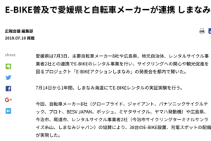 1.E-BIKE普及で愛媛県と自転車メーカーが連携 しまなみ海道で実証実験 (7/10付 アドタイ)