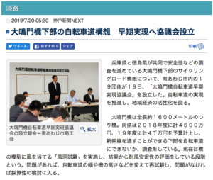 1.大鳴門橋下部の自転車道構想 早期実現へ協議会設立 (7/20付 神戸新聞Next)
