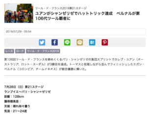 さて先日7/28(日)、ツールドフランスの最終ステージ行われ、ゴール後、無事に今年もパリ・シャンゼリゼ通りでフィナーレ・セレモニーが行われました。