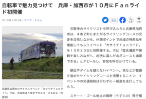 4.自転車で魅力見つけて 兵庫・加西市が10月にFanライド初開催 (8/1付 産経新聞)