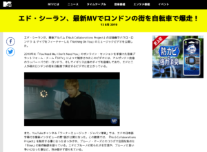 6.エド・シーラン、最新MVでロンドンの街を自転車で爆走!(8/13付 MTV)