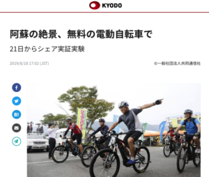 2.阿蘇の絶景、無料の電動自転車で (8/18付 KYODO)