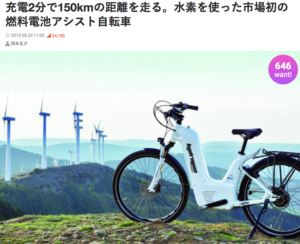 4.充電2分で150kmの距離を走る。水素を使った市場初の燃料電池アシスト自転車(8/20付 ギズモードジャパン)