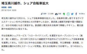1.埼玉県川越市、シェア自転車拡大 (10/4付 日本経済新聞)