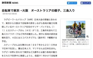 4.自転車で東京→大阪 オーストラリアの親子、三島入り (10/2付 静岡新聞)