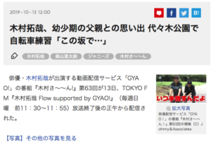 5.木村拓哉、幼少期の父親との思い出 代々木公園で自転車練習「この坂で…」 (10/13付 ORICON NEWS)