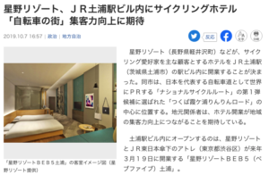 1.星野リゾート、JR土浦駅ビル内にサイクリングホテル 「自転車の街」集客力向上に期待 (10/7付 産経新聞)