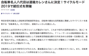 5.自転車名人八代目は道端カレンさんに決定!サイクルモード2019で就任式を開催 (10/23付 cycle sports)
