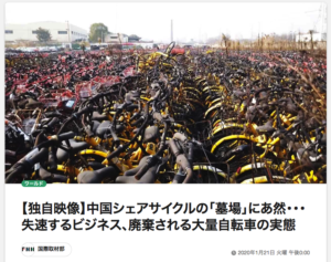 1.【独自映像】中国シェアサイクルの「墓場」にあ然。失速するビジネス、廃棄される大量自転車の実態 (1/21 FNN PRIME)