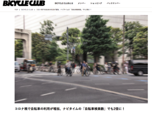 1.コロナ禍で自転車の利用が増加、ナビタイムの「自転車検索数」でも2倍に! (7/1付 BiCYCLE CLUB 編集部)